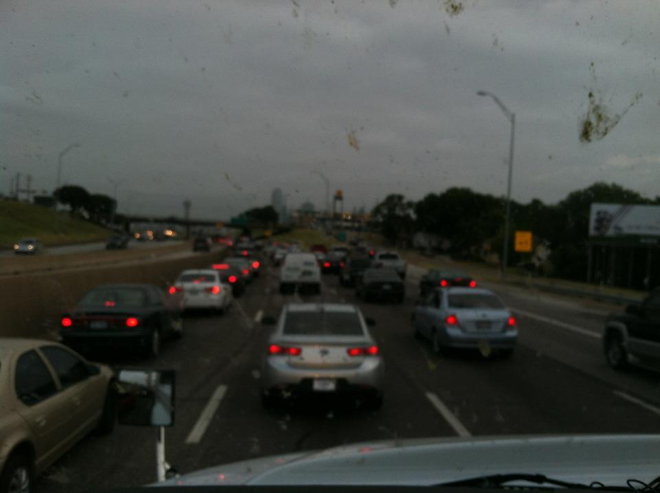 Morning traffic in Dallas..... Construction going on everywhere... Missed 2 exits in this condition above because..... Mrs.GPS thinks she could give out wrong directions on a Monday morning....